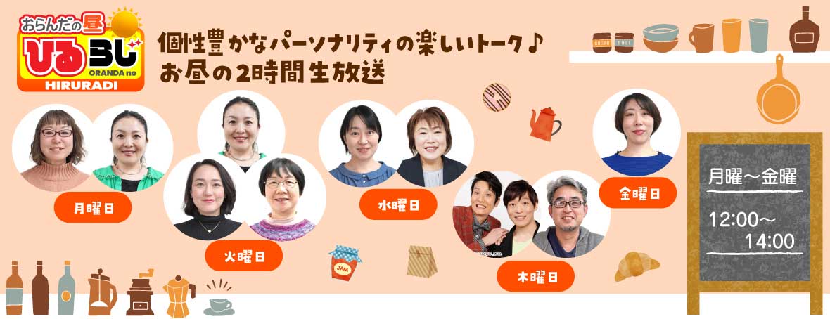 タケオ社長のDAKARA金栄堂 毎週木曜日 7:45~7:50 / 13:10~13:15 / 17:45~17:50 金栄堂のタケオ社長が、眼鏡のこと、目のことをわかりやすくアドバイス。思わず目から鱗のコーナー!
