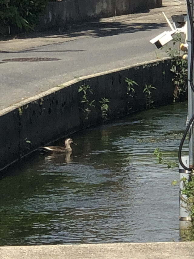 水路にセンサーカメラと、鴨♡カモにも会えるかも。